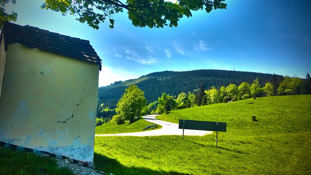 Droga Stu Zakrętów prowadzi z Radkowa do Kudowy Zdrój. Potencjał drogi niestety obniża słaba jakość asfaltu. Przejechaliśmy nią bez specjalnej ekscytacji i w Kudowie Zdroju skręciliśmy do Czermnej aby zobaczyć Kaplicę Czaszek.