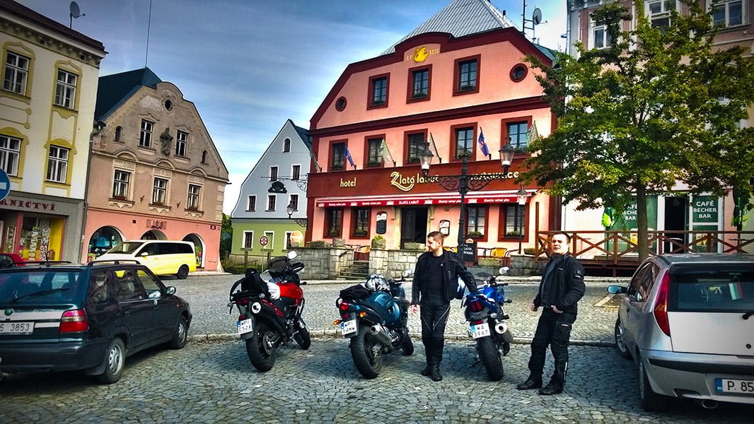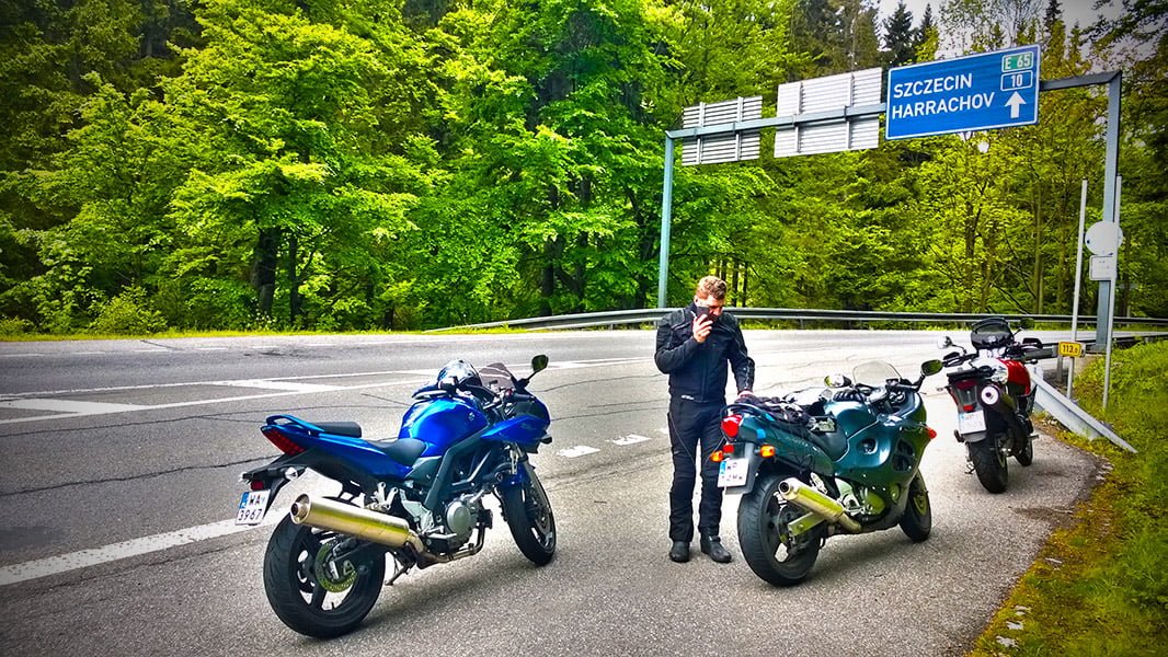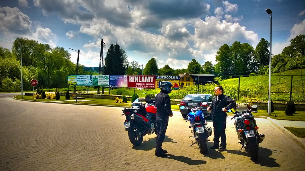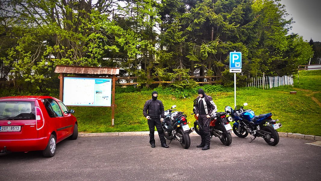 Sobota przywitała nas pięknym słońcem. Trochę rozleniwieni, około 11.00 wyruszyliśmy w kierunku Kłodzka a następnie Tłumaczowa. Niestety pogoda nagle się zmieniła i w deszczu dotarliśmy do Lubawki. Zatankowaliśmy motocykle i cierpliwie czekaliśmy na przejście opadów. W międzyczasie na stację zawitał podróżnik na Ducati Paul Smart 1000LE (zasadniczo to replice). Skutecznie namówieni i zachęceni wychodzącym słońcem, zmieniliśmy zaplanowaną trasę. Nowa trasa miała biegnąć z Lubawki przez Trutnov do przygranicznej wioski Malá Úpa, a następnie przez Mladé Buky trasą 14 do Harrachova i Szklarskiej Poręby.