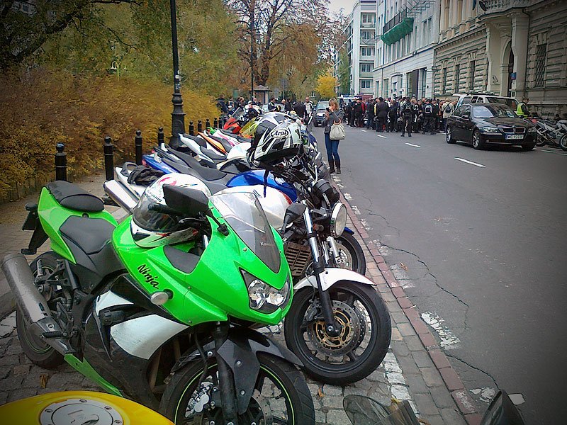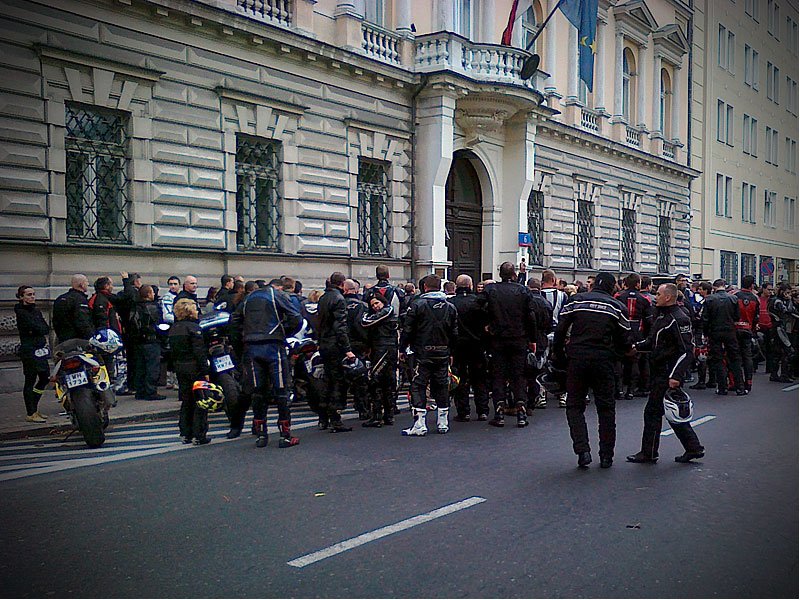 Kilka dni temu odszedł Marco Simoncelli. Dziś odbyło się jego pożegnanie pod ambasadą Włoch. Stawiło się wielu motocyklistów, nawet z województw ościennych. Pożegnaliśmy go z Wiśnią i po krótkiej uroczystości postanowiliśmy ten dzień zakończyć pizzą w Płocku.