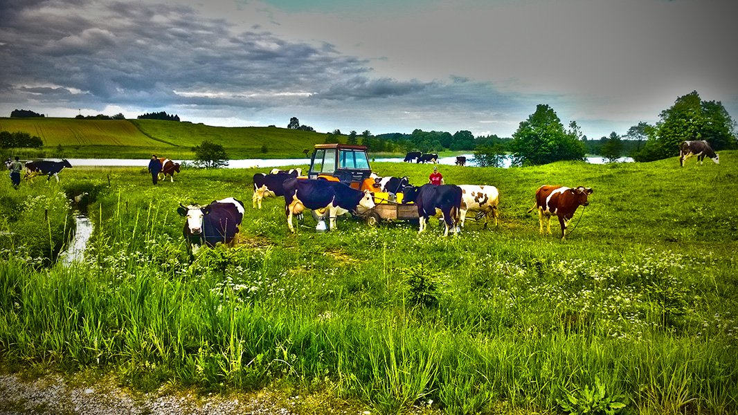Kupiliśmy lokalne bułki oraz lokalną kiełbaskę, a dopełnieniem tego było piwo Specjal. Tak wyposażeni, ruszyliśmy na spacer wokół jeziora, aby nie tracić miło rozpoczętego popołudnia. Miejsce, w którym wylądowaliśmy – Wiżajny jest naprawdę urokliwe – teren mocno pofałdowany, wszędobylskie krowy, sprawiły, że zapomnieliśmy szybko o troskach codziennego życia. Tu się żyje zupełnie inaczej niż u Nas. Droga wije się wzdłuż linii brzegowej, przecinając Burniszki, Stankuny i Wiłkupie, w pewnym momencie zbliżając się na kilometr do granicy z Litwą. 12-to kilometrowy spacer zakończyliśmy w naszym domku nad brzegiem jeziora, gdzie przy kolejnej butelce piwa Specjal prowadziliśmy dysputę o życiu, gospodarce i polityce.